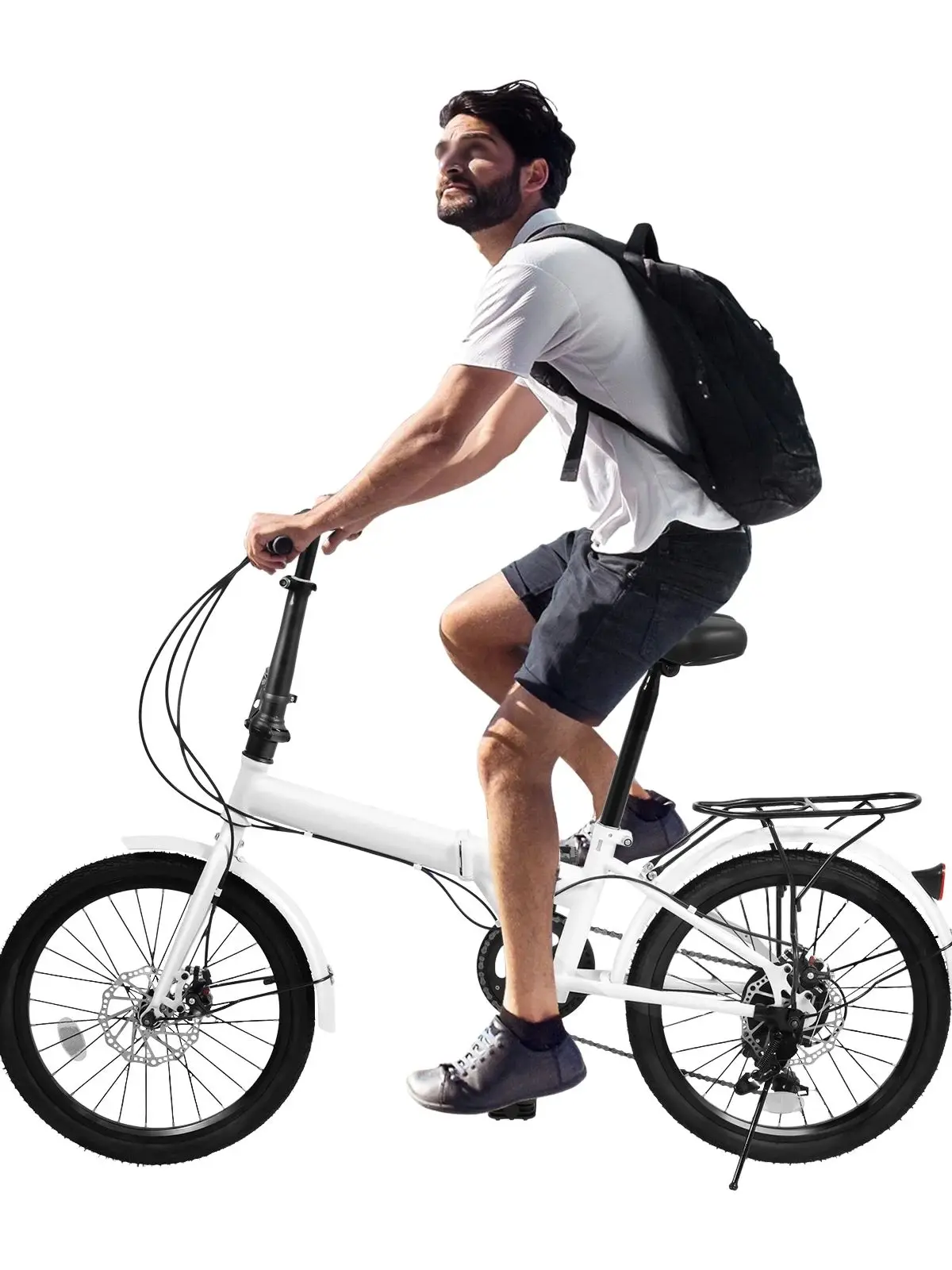 If you are a cycling enthusiast or want to improve your biking skills, then this 20-inch folding bike is an ideal choice for you whether it’s for daily commuting or travel. Front and rear disc brakes provide stable speed control and improve safety. The 7-gear transmission is convenient for you to fight against different road conditions. What are you waiting for? Let it take you to enjoy the fun and freedom of biking.